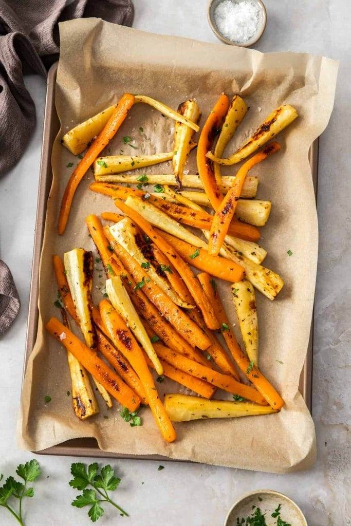 Classic oven-roasted root vegetables are an easy and healthy side dish to add to any meal.