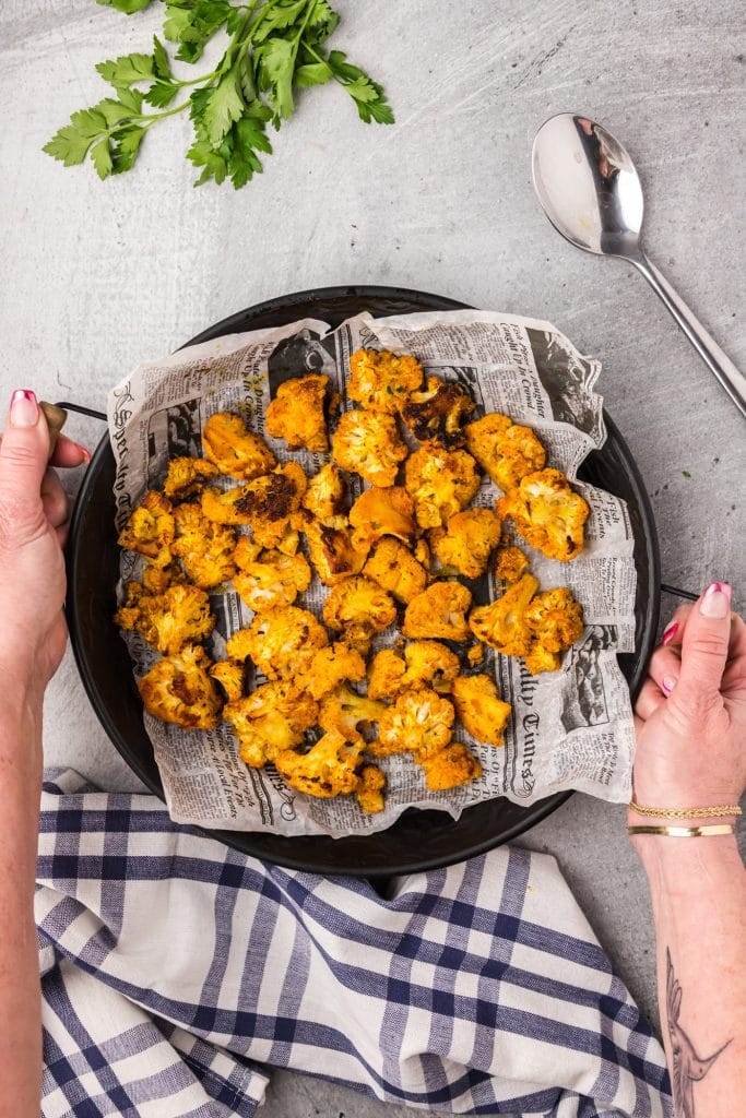 This spicy roasted cauliflower recipe transforms bland florets into a mouthful of savory golden-brown nuggets you can enjoy as a side dish or appetizer.