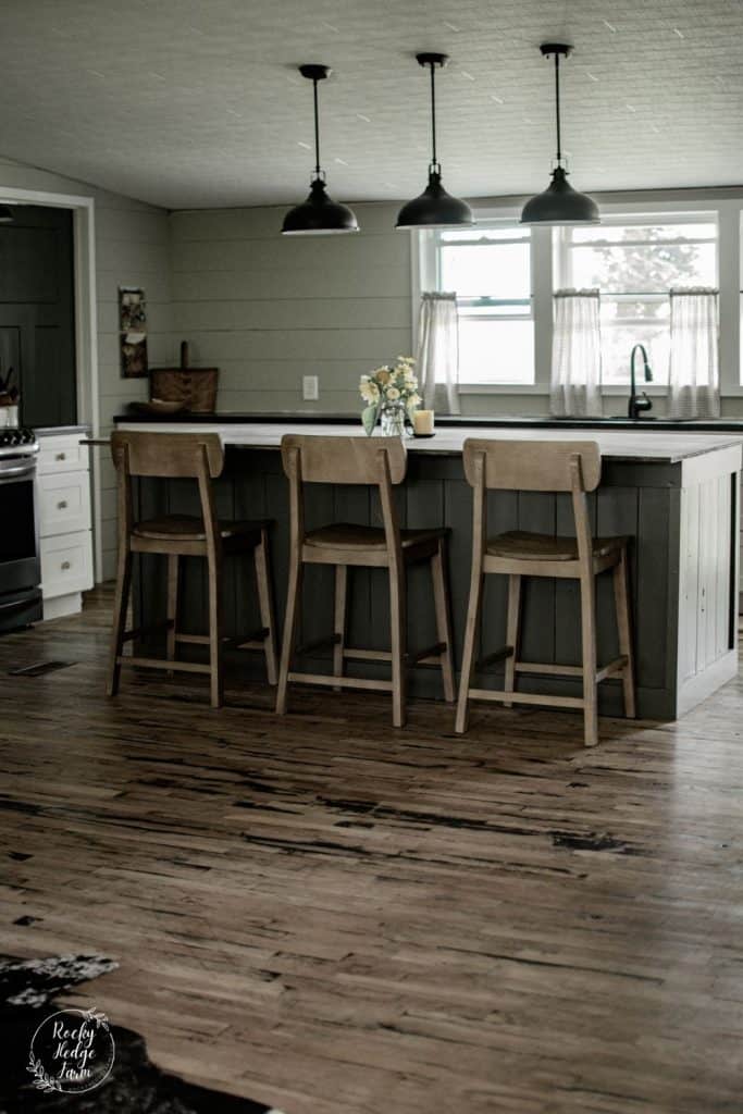 Building a rustic farmhouse kitchen island was a great way to add rustic beauty to our large space.