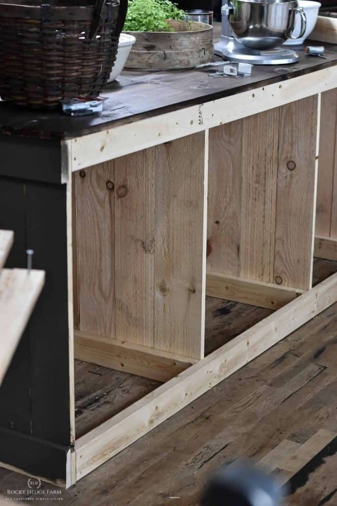 Do this for each of the three storage sections of the island to create the bottom shelf.