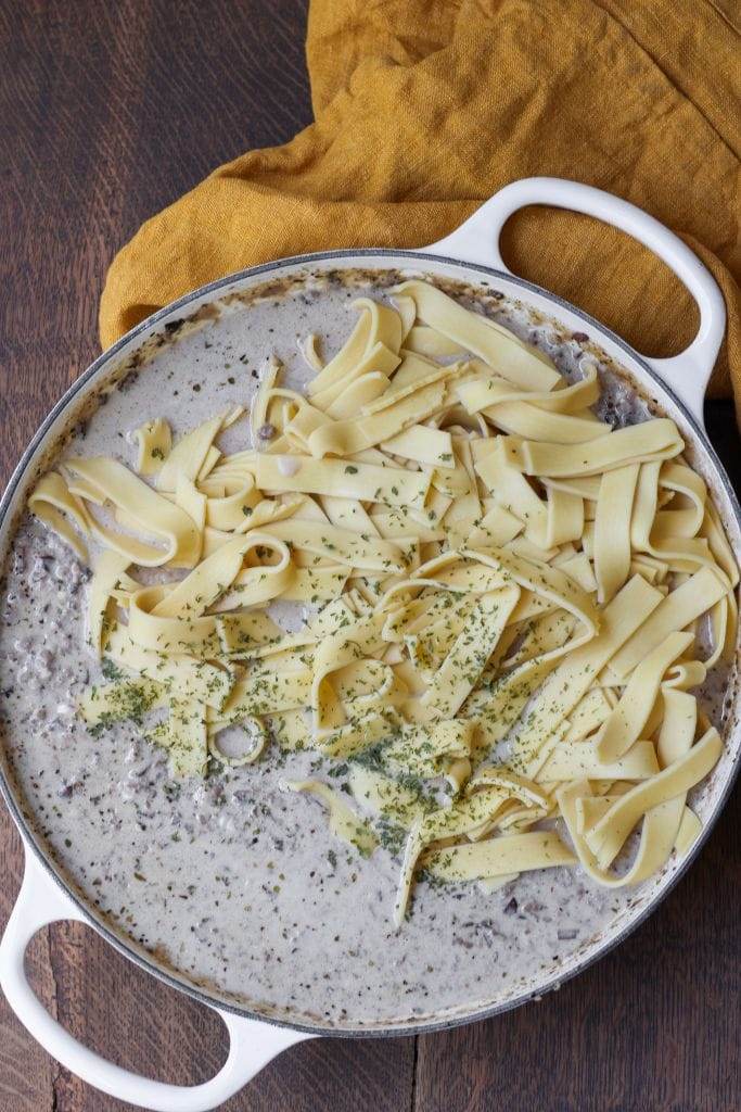 Here’s how to make this easy ground beef stroganoff recipe in just 30 minutes:
